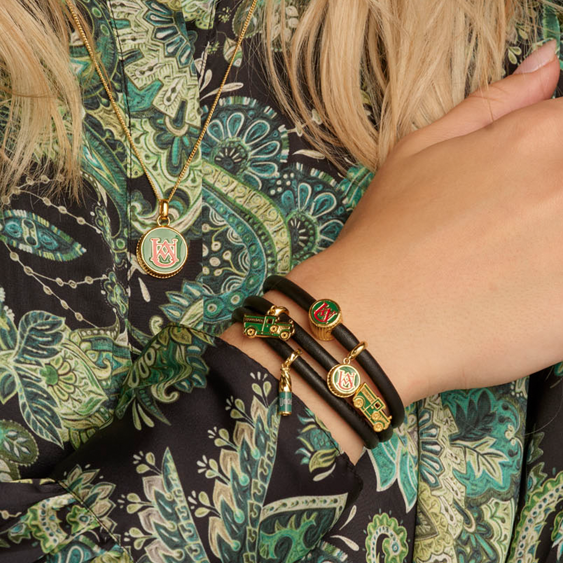 A lovely charm inspired by the original Underberg bottle top. With a beautiful red and green handpainted enamel. Use it on your bracelet, earrings or as a pendant.Product information